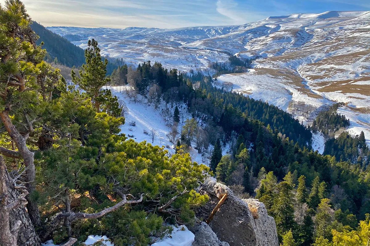 Главная панорамная точка региона. Даже без длинных маршрутов здесь есть что посмотреть: сама дорога наверх, открытые участки плато и смотровые дают сильное впечатление. Если хочется идти дальше пешком, проходят через платный кордон заповедника и закладывают больше времени. На обычный выезд чаще всего уходит 2-4 часа минимум. В выходные на КПП бывают очереди, а погода меняется быстро: даже летом наверху может понадобиться ветровка.